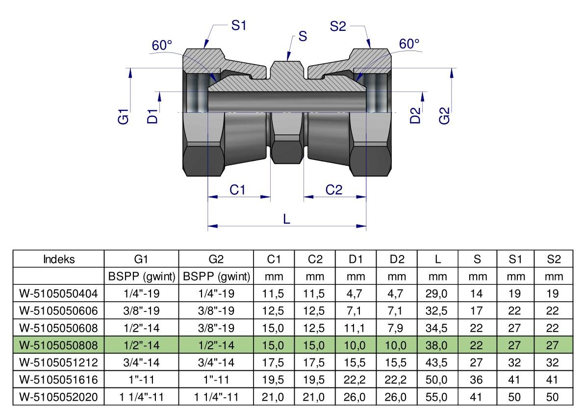 Złączka hydrauliczna calowa AA 1/2″ BSP Waryński ( sprzedawane po 2 ) [W-5105050808]