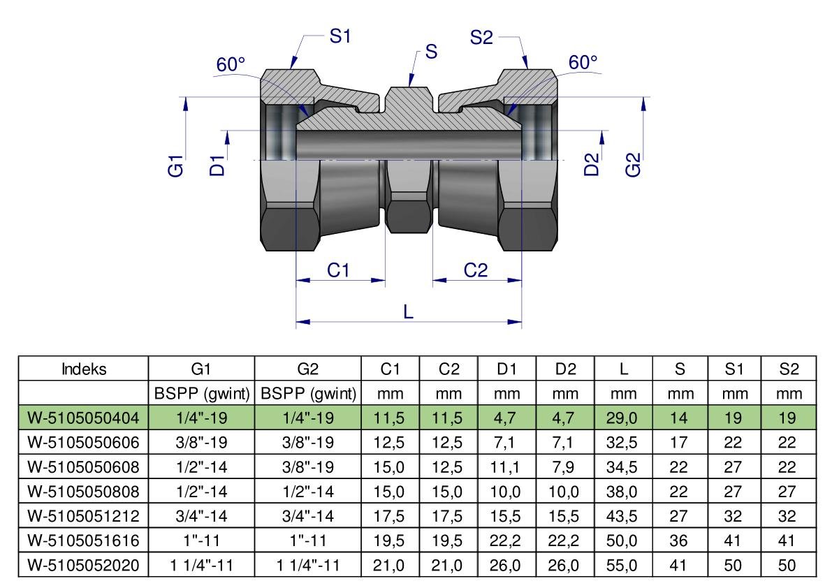 Złączka hydrauliczna calowa AA 1/4″ BSP Waryński ( sprzedawane po 2 ) [W-5105050404]