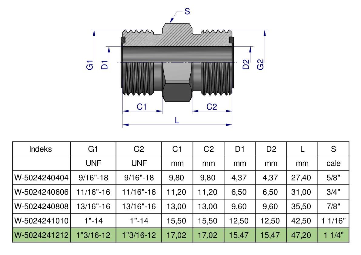 Złączka hydrauliczna calowa BB 1 3/16″ ORFS (UNF) Waryński [W-5024241212]