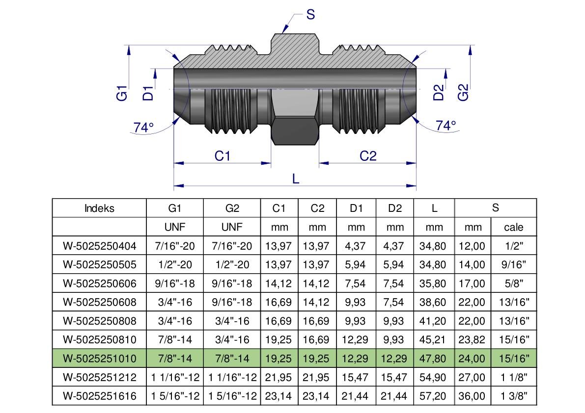 Złączka hydrauliczna calowa BB 7/8″ UNF (JIC) Waryński ( sprzedawane po 2 ) [W-5025251010]