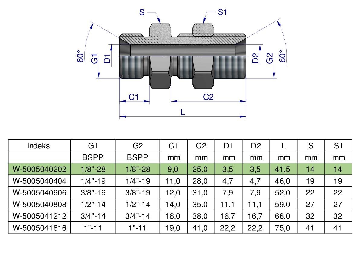 Złączka hydrauliczna calowa grodziowa BB 1/8″ BSP z przeciwnakrętką (XSV) Waryński ( sprzedawane po 2 ) [W-5005040202]