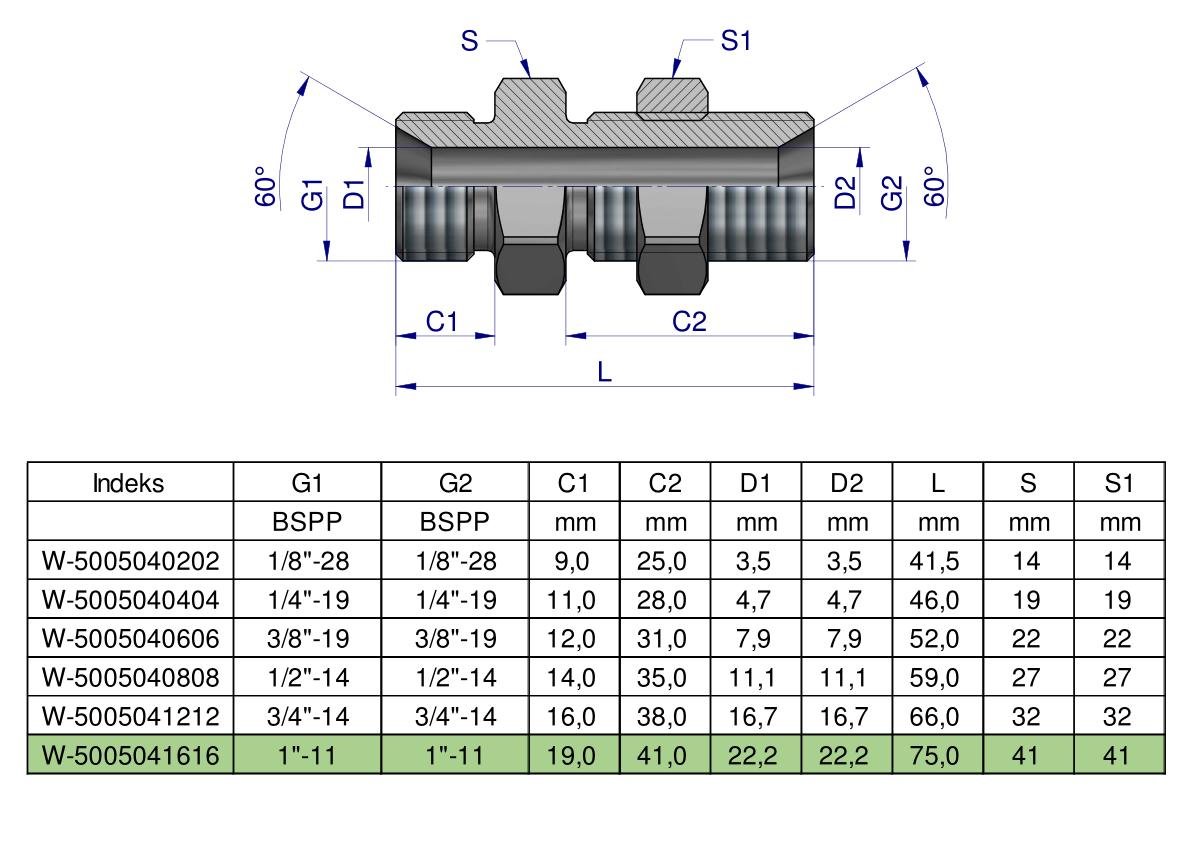 Złączka hydrauliczna calowa grodziowa BB 1″ BSP z przeciwnakrętką (XSV) Waryński [W-5005041616]