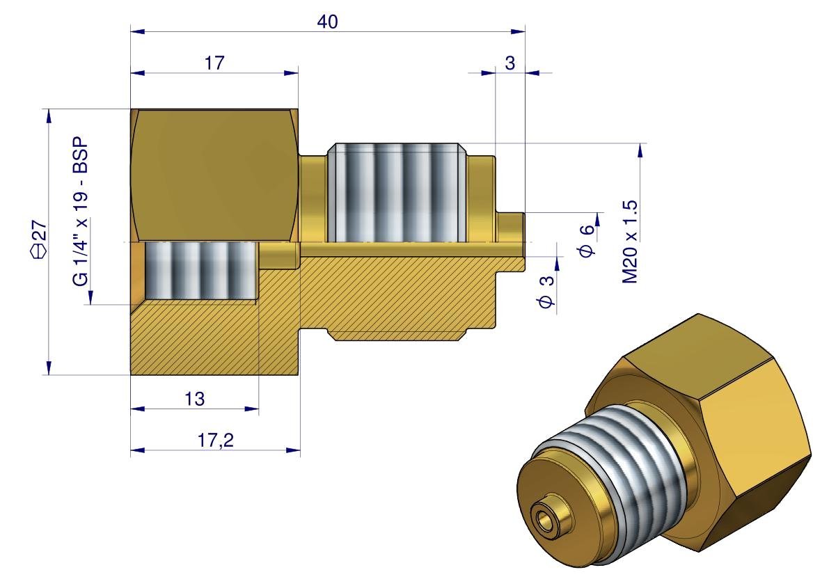 Złączka manometryczna gwint zewnętrzny M20x1.5 x gwint wewnętrzny G1/4″ (mosiądz) POLMO [ZMM20R14BAP]